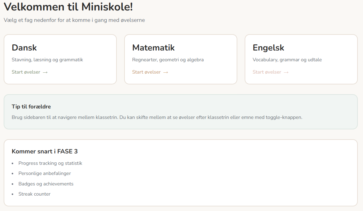 Interaktive øvelser i dansk, engelsk og matematik for børn i 0.-9. klasse